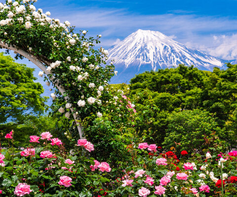 6.3haの敷地の東西にバラ園があり、200種1,800株のバラがあります。富士山とバラのコラボが狙える公園で...