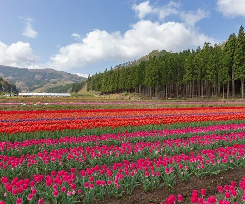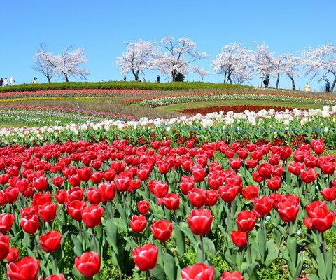 胎内市築地にある長池を中心にした、森林と花畑の公園です。約60種80万本のチューリップ畑と、2haの菜の...