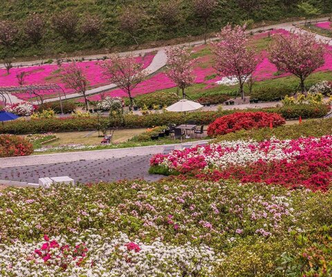 水仙40品種10万本、桜11種400本、チューリップ30品種3.5万本、ネモフィラ50万本、あじさい40種2万本、コ...