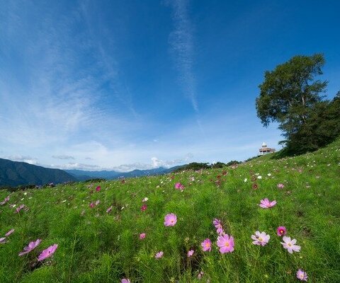 翠波峰の標高 760m付近に、約 100ha に広がる高原いっぱいにコスモスが咲き誇ります。コスモス畑は第1...