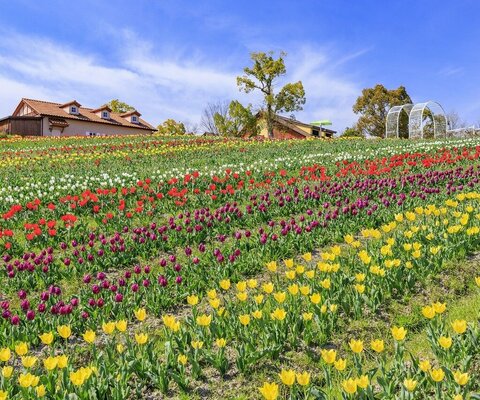 約1万m2の丘陵地に、春には約10万本の菜の花が咲き、桜とのコラボが楽しめます。秋にはコスモス20種色...