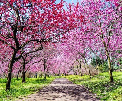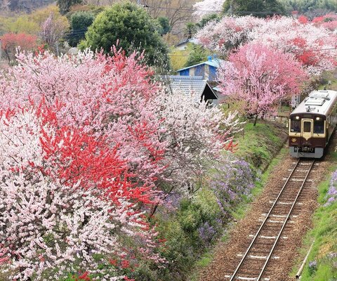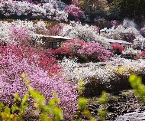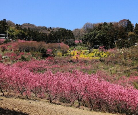 5,000本以上の花桃が彩ります。毎年3月の最終日曜日に花桃まつりが開催されます。駐車場有。