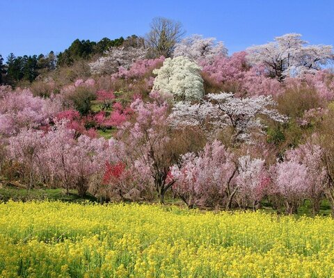 福島市飯野町(いいのまち)にある公園です。地域の住民が7,000本のハナモモやレンギョウ、椿などを植樹...