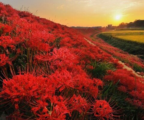 津屋川堤防沿い 3km にわたり、約 10 万本の彼岸花が連なります。堤防の斜面を真っ赤に染める彼岸花や養...