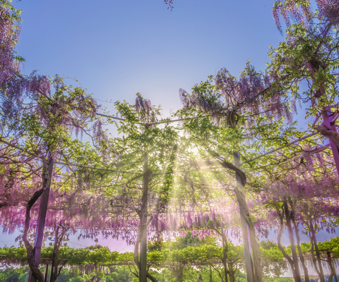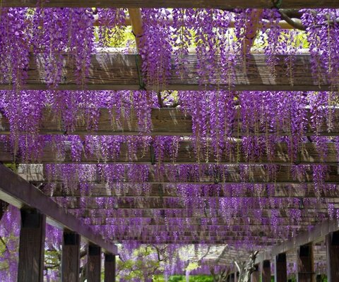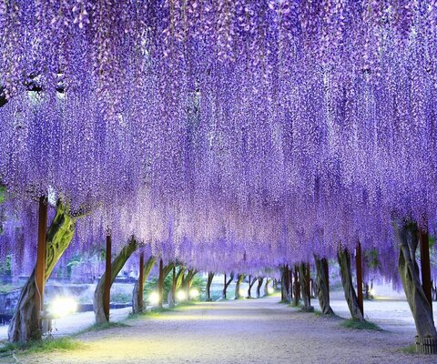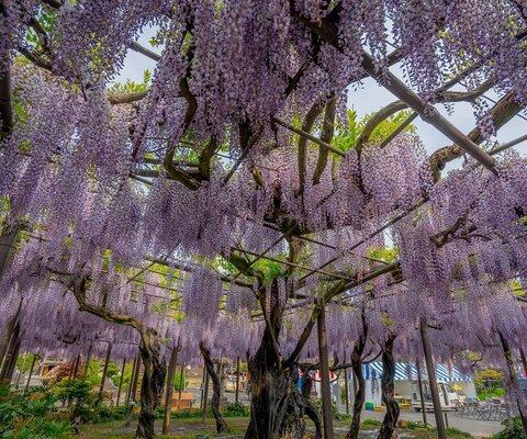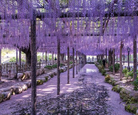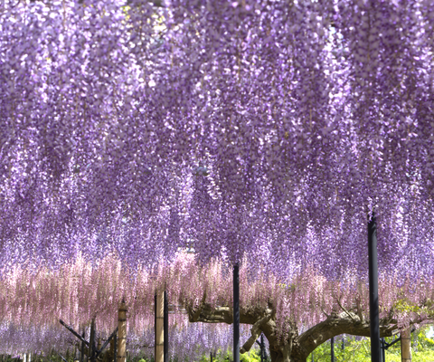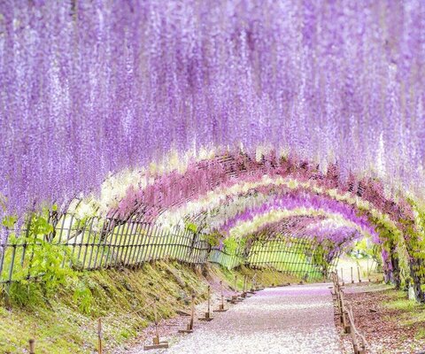 アーチ状に造られた110mの藤のトンネルは海外のメディアでも美しいと取り上げられるほど有名になりまし...