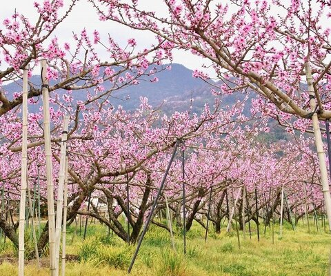 紀ノ川沿い南側、紀の川市桃山町には、ひと目十万本といわれる桃の畑が広がります。4月上旬は桃源郷にな...
