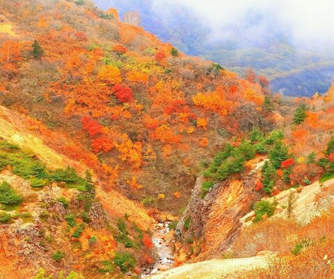 エメラルドグリーンのお釜で有名な火山です。夏は高山植物、秋は紅葉、冬は樹氷が楽しめます。ロープウ...