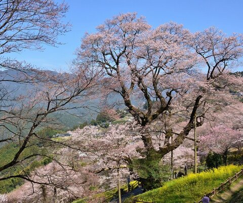 仁淀川町(によどがわちょう)、仁淀川の左岸山斜面にある公園です。花桃とソメイヨシノが咲きます。山...