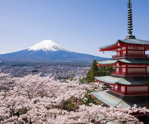 富士吉田市にある五重塔がシンボルの神社です。300本の桜が咲きます。展望デッキかあり、富士山と五重塔...