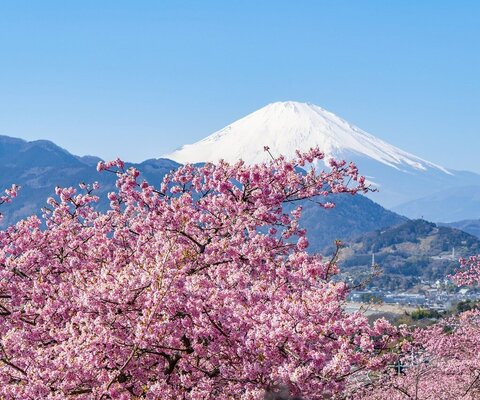 約700本の梅が咲く梅園。天気が良い日には、梅と富士山の競演が眺められます。真っ白な雪に覆われた富士...
