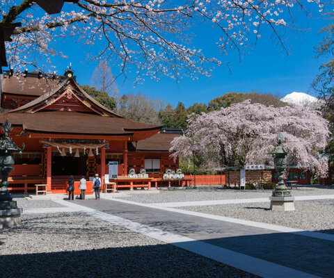 ご神木が桜である富士山本宮浅間大社は、境内にしだれ桜、ソメイヨシノなど約500本の桜が植えられていま...