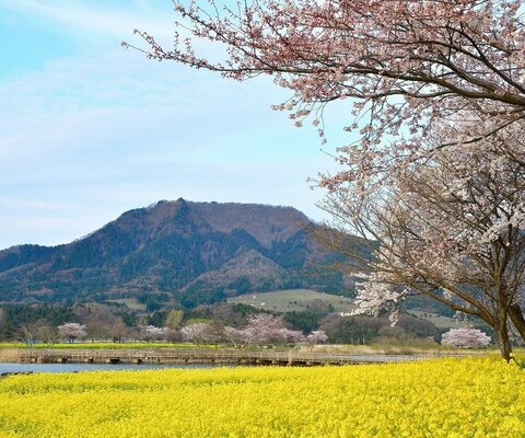 角田山(かくだやま、標高481m)を背景に、四季折々の花が咲きます。春は桜と菜の花が広がり、夏にはか...