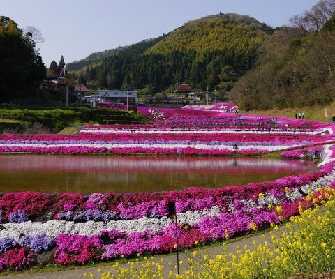 周南市、大道理鹿野地(かのじ)の棚田に10万本の芝桜が植えられています。農家の方による「百笑倶楽部...
