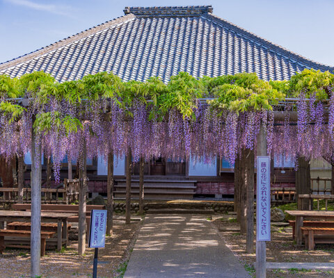 本庄市にある曹洞宗のお寺です。樹齢650年、埼玉県天然記念物の骨波田の藤の他、8種の藤があります。濃...