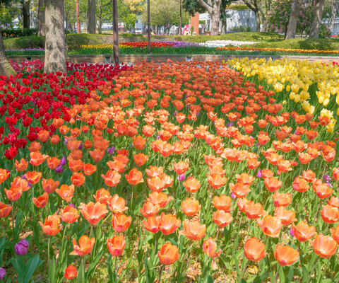 毎年約70品種14万球のチューリップが植えられています。