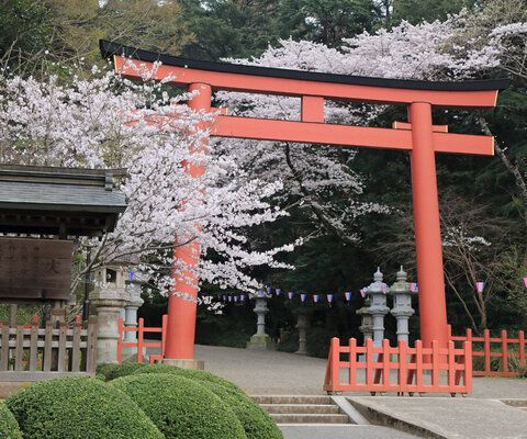 全国約400社の香取神社の総本社。境内に約700本の桜が咲く桜の名所。