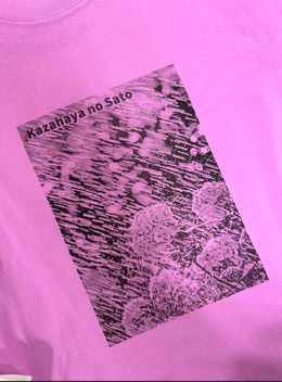 かざはやの里で撮影したアジサイの写真を、モノクロでプリントしたTシャツです。水浴びをしているアジサイは、かざはやの里ならでは。おしゃれにかっこ良く仕上がりました!「kazahaya no sato」という文字も入っているので、お土産にもピッタリです。