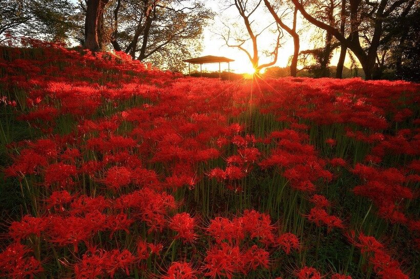 どこか懐かしさを感じる真っ赤な彼岸花の風景。よく見るととても美しい花姿で近年では人気です。別名で曼殊沙華とも呼ばれ、インドでは天上に咲く花として大切にされています。そんな幻想的な彼岸花が咲き誇る名所をご紹介。(年によって開花時期は異なります。お出かけの際はHP等で開花状況をご確認ください。)