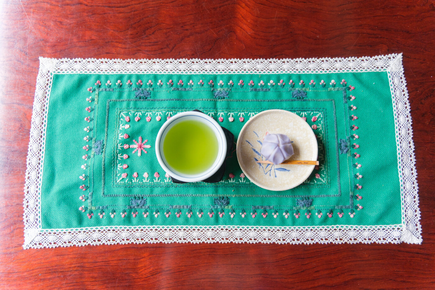この日は桔梗の練り切りと冷たいお茶でした。