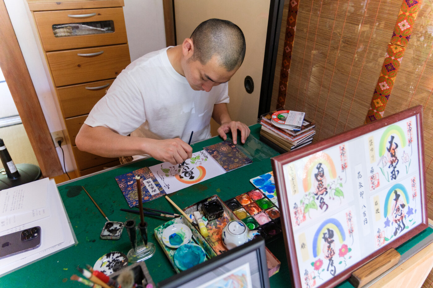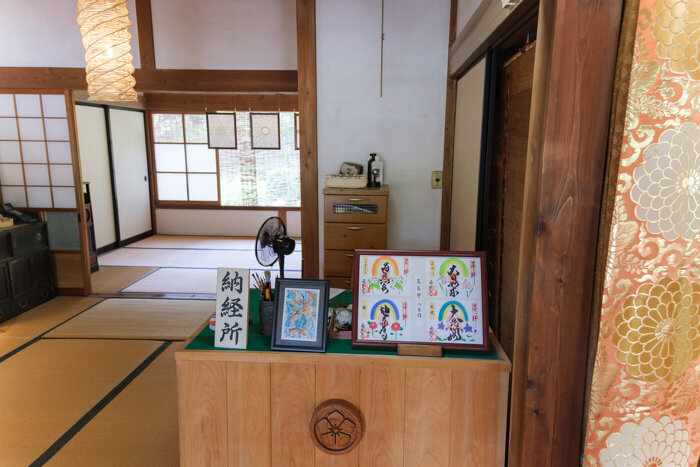 絵心のある副住職が書く花朱印(御朱印)は、笹百合・桔梗・秋海棠・椿の全4種(各800円)
