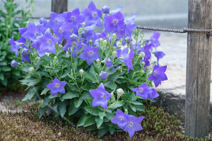 約20年前、苔の緑に合う花として桔梗の植栽を始めたのがきっかけだそうです。